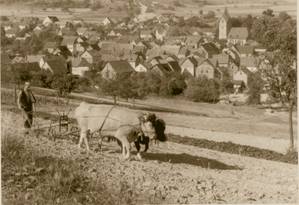 anpflanzen oder ansähen konnte, mussten die Erdschollen mit Pflug, Egge oder Grubber zerkleinert werden. Mit „Hüh“ und „Hott“ zogen die Gespanne über die Felder um