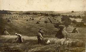 Heuernte erfolgte die Getreideernte. Das Getreide wurde geschnitten und zu