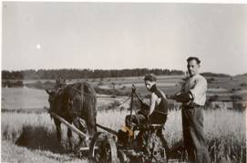 des Bauernhofs wurde mit der Sense oder bereits mit einem vom Pferd gezogenen